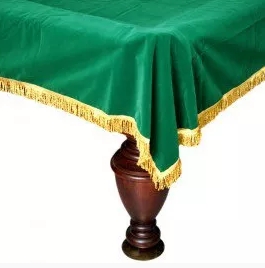 Покрывала для бильярдного стола могут быть разными. Существуют варианты, изготовленные из очень дорогих тканей, а есть варианты попроще. Все будет зависеть от дизайна вашей бильярдной комнаты, от вашего бюджета и назначения покрывала. В целом, все чехлы выполняют одну функцию - это защита бильярдного стола от пыли, грязи и влаги. Данное покрывало предназначено для стола размером восемь футов, также есть варианты для столов другого размера. Изготовлено оно из такого материала, как бархат, смотрится он очень эстетично и привлекательно. По краю покрывала проходит жёлтая бахрома, которая делает его ещё интереснее.