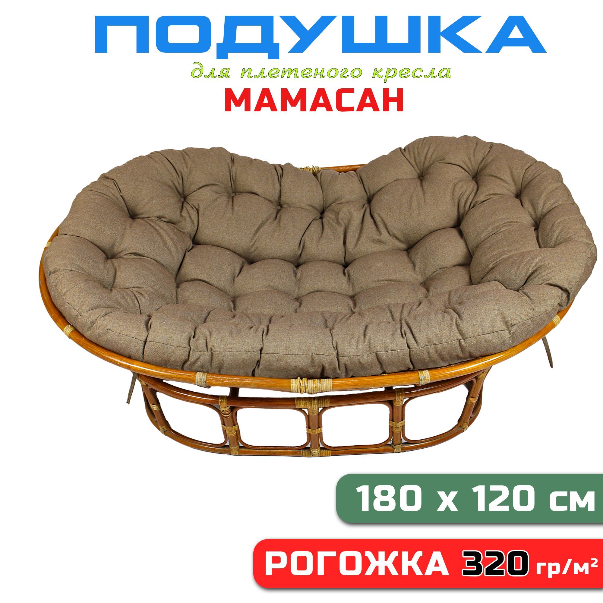 Купить Подушка для дивана Мамасан, 180х120 см, коричневая рогожка цена 5990 руб. в Москве и СПб с доставкой по России